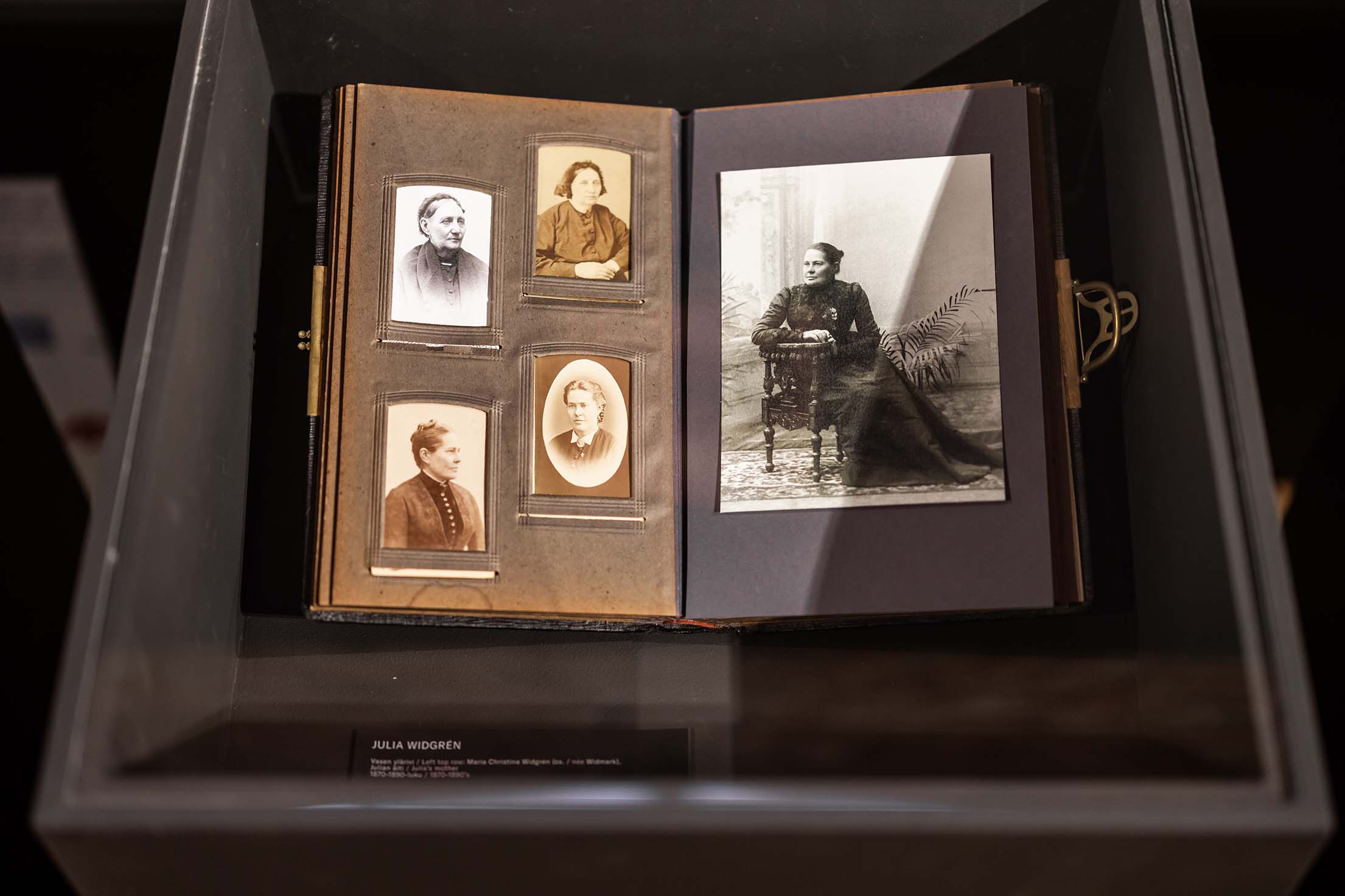 Valoon kahlitut (Chained to Light) is a monument to the career of the pioneer in photography Julia Widgrén (1842–1917). The exhibition pauses to look at Widgrén’s life and photographs, and to examine the worldviews that emerge from behind them. The focus of the exhibition revolves around the development of photography in Finland, women’s active role in the early photography, and images of people in the countryside, especially women. The exhibition’s slow techniques pay homage to the craftsmanship of the photographic profession in the 19th century. Widgren, who began her career in the 1860s, was one of the most successful photographers in Finland. She lived an exceptionally independent life as a woman and entrepreneur in Vaasa.