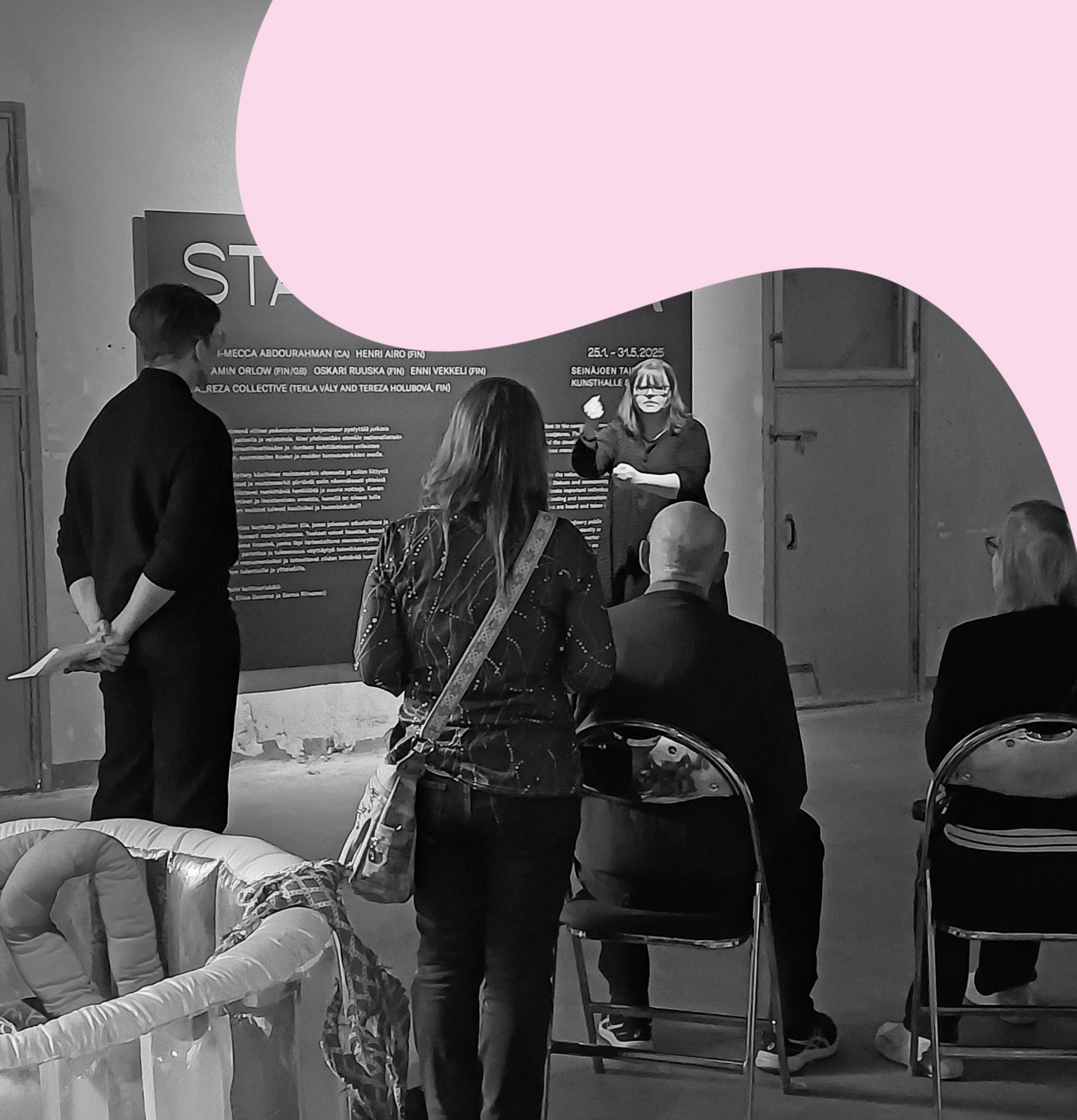 As part of the Independence Day pre-party at Kalevan Navetta, there will be an open for all guided tour in sign language of Tiina Laasonen’s exhibition I Know a Tree that Grew Up. During the tour, the guide will give more detailed information about the exhibition and the works on display. The tour will be held in Finnish sign language. The tour is free of charge, and both sign language users and non-users are welcome to participate. The tour starts in exhibition space Halli at 6 pm and lasts approximately 45 minutes.
