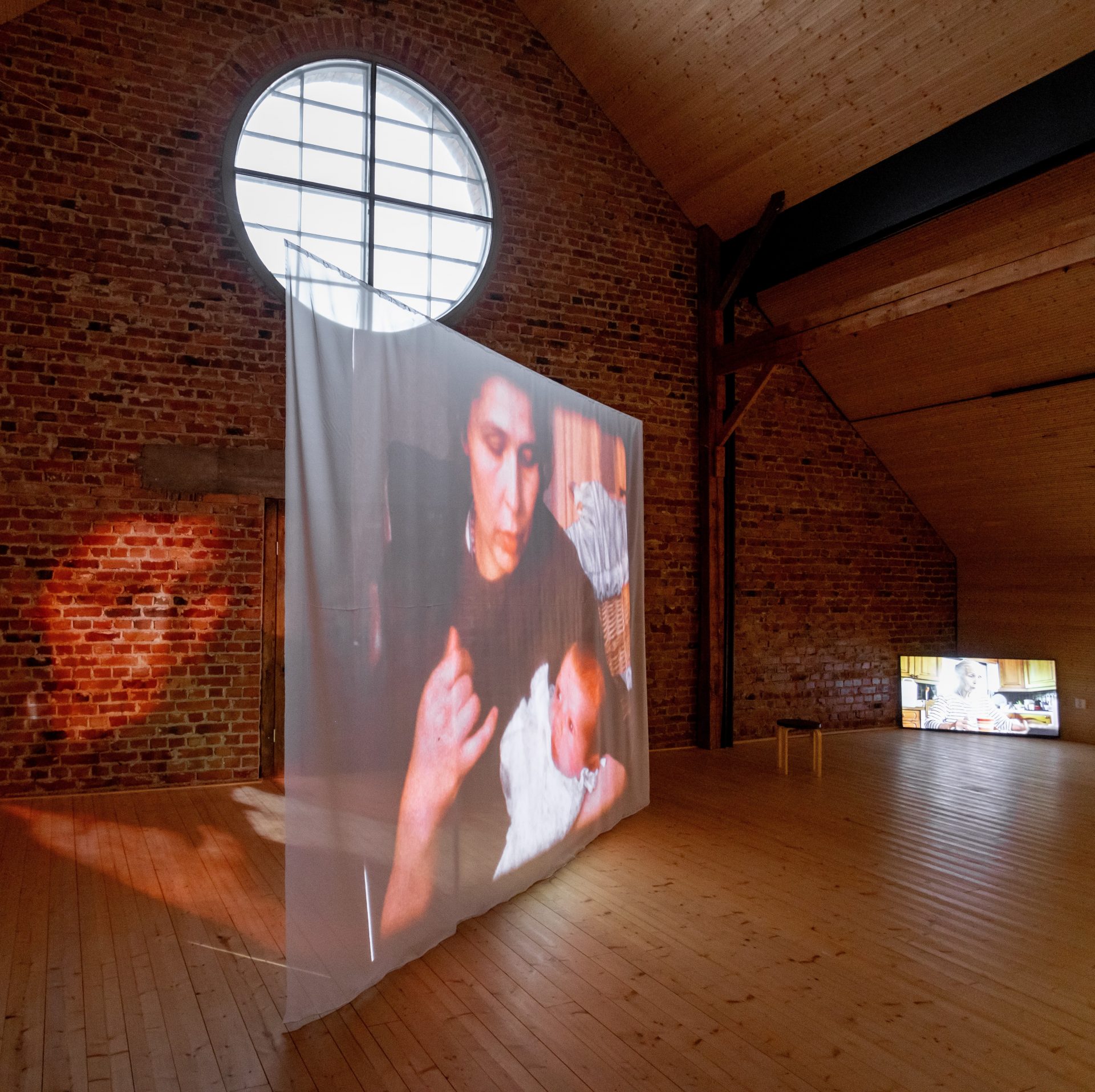 Kari Soinio: Laskoksia. Videoteos Mother – Beginning, 2024, Kunsthalle Seinäjoki. Photo Krista Luoma