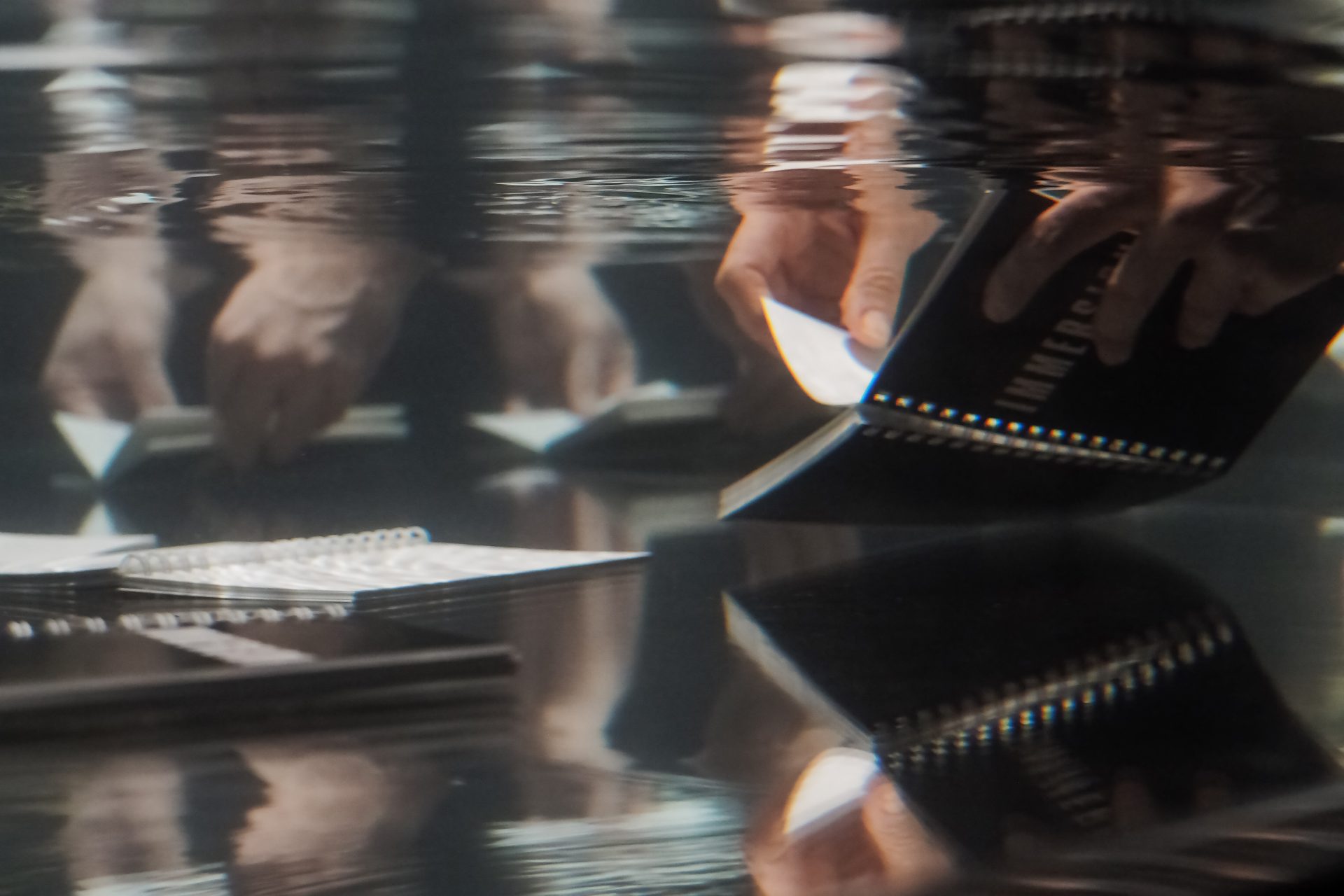 It is composed of several reading objects available to the audience: rolls of paper unwinding, love letters ripped, words eaten and hands immersed in water. Audience Body addresses the phenomenon of audience: its collectivity, liveness and the related tensions that appear when we gather in order to receive.